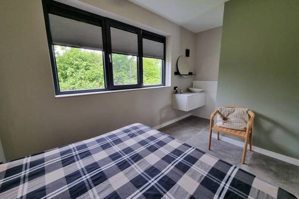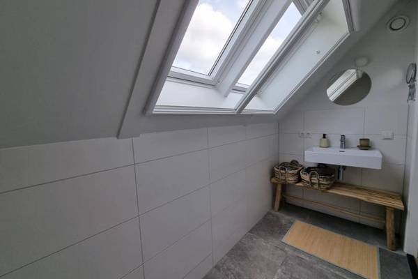 Tevens vindt u op de begane grond een slaapkamer met tweepersoonsboxspring en badkamer ensuite, voorzien van een inloopdouche en aparte wastafel. Het toilet is separaat bij de entree.