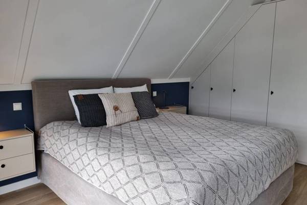 De eerste verdieping, die middels een trap vanuit de woonkamer kan worden betreden, beschikt over 3 slaapkamers: de hoofdslaapkamer met tweepersoons boxspring en badkamer ensuite; slaapkamer met tweepersoons boxspring; slaapkamer met 1 halfhoogslaper en 1 persoonsbed. Tevens een tweede badkamer met inloopdouche, wastafel en separaat toilet.