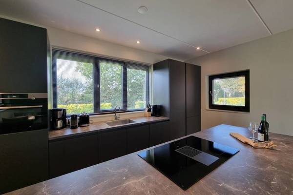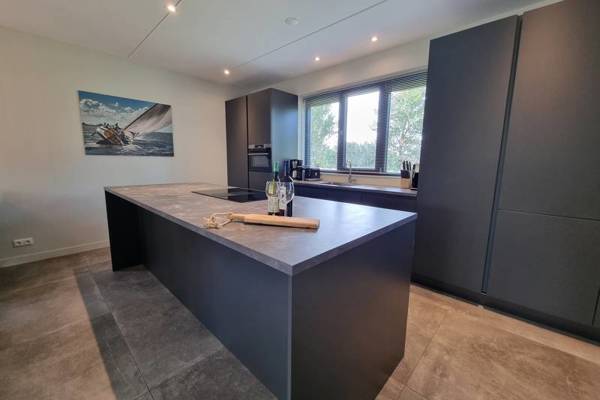 De open keuken met kookeiland maakt onderdeel uit van de woonkamer en is o.a. voorzien van een multifunctionele oven,vaatwasser en Nespresso koffiemachine.