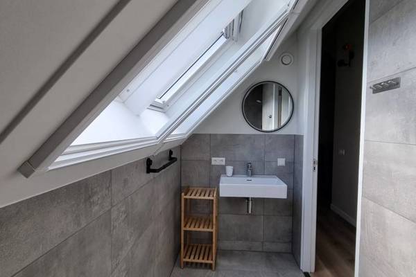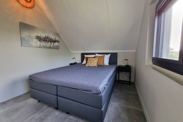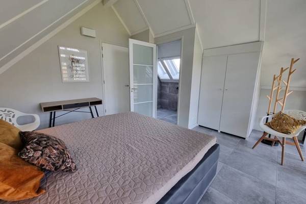 De eerste verdieping, die middels een trap vanuit de woonkamer kan worden betreden, beschikt over 3 slaapkamers: de hoofdslaapkamer met tweepersoons boxspring met badkamer ensuite; slaapkamer met tweepersoons boxspring; slaapkamer met 1 halfhoogslaper en 1 persoonsbed. Tevens een tweede badkamer met inloopdouche, wastafel en separaat toilet.