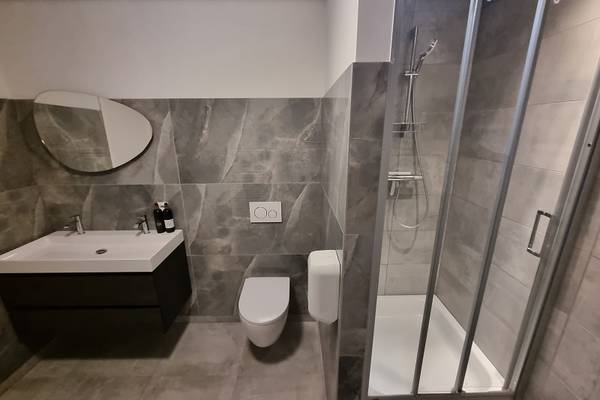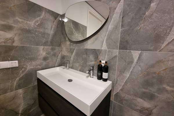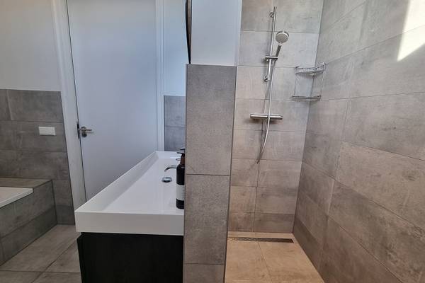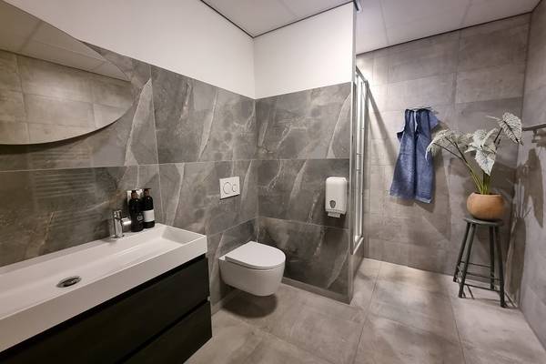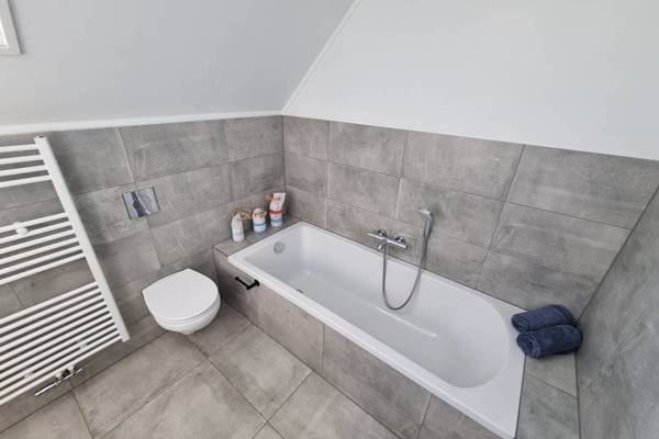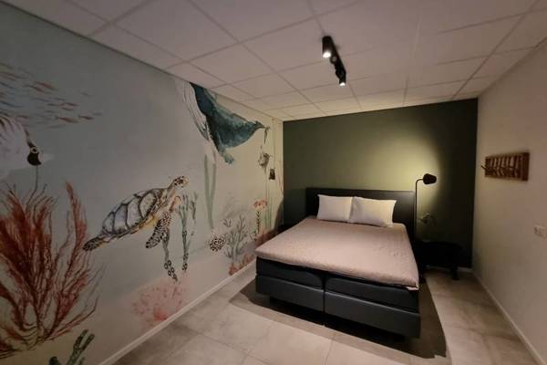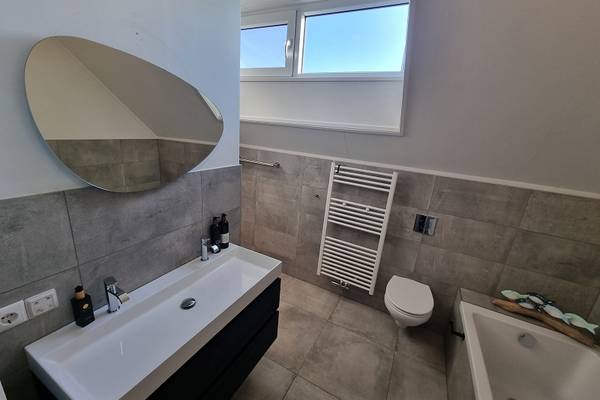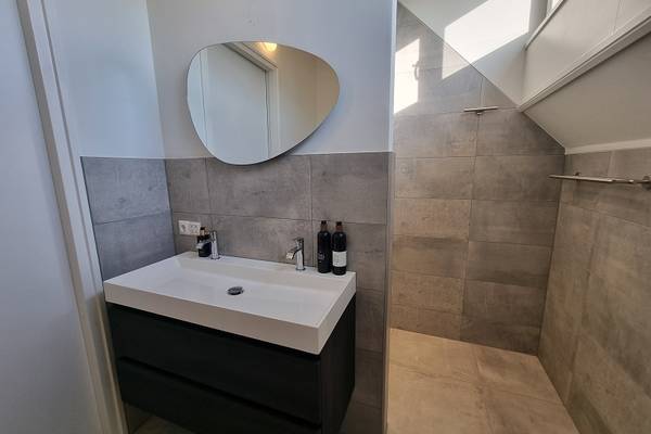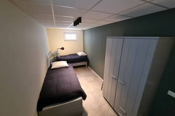 In het souterrain zijn 2 slaapkamers: slaapkamer met 2-persoonsboxspring; slaapkamer met 2 1-persoonsbedden. Tevens een badkamer met douchecabine, wastafel en toilet.