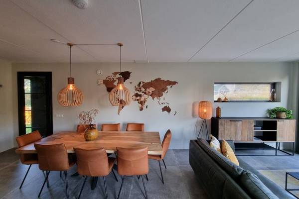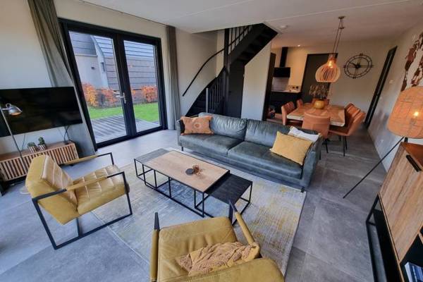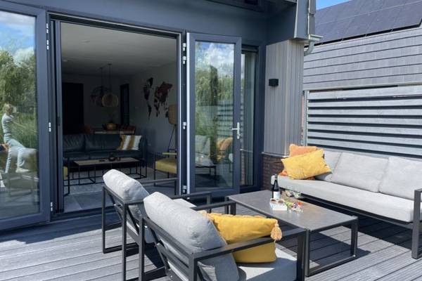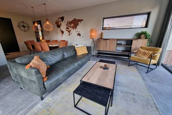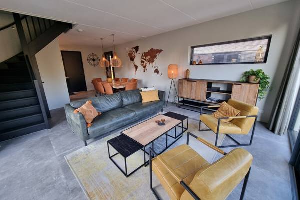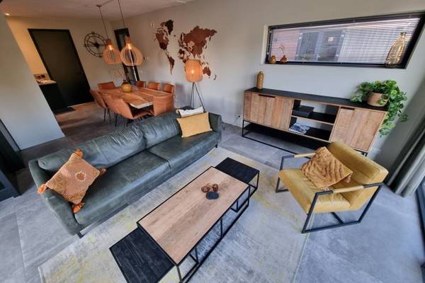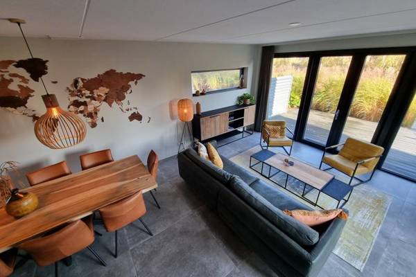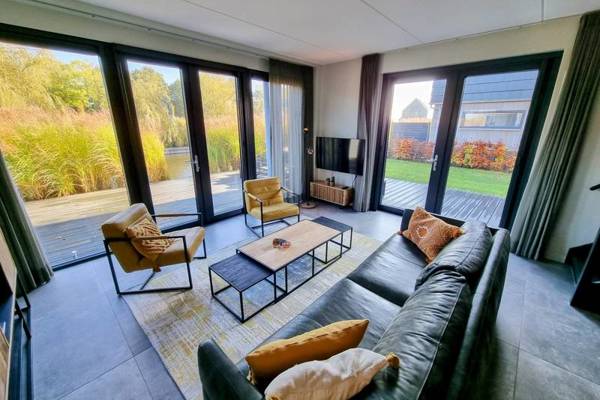 De watervilla beschikt over een ruime woonkamer met comfortabele zithoek,Smart tv en een ruime eettafel.