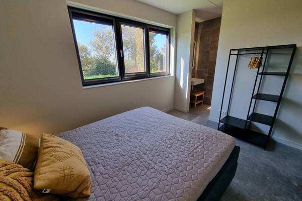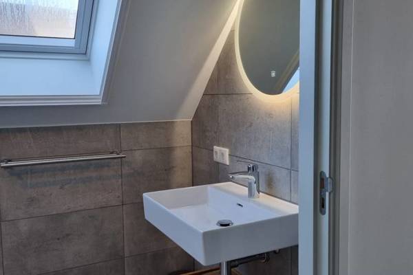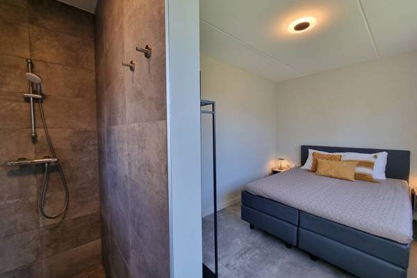 Tevens vindt u op de begane grond een slaapkamer met tweepersoonsboxspring en badkamer ensuite, voorzien van een inloopdouche en aparte wastafel. Het toilet is separaat bij de entree.