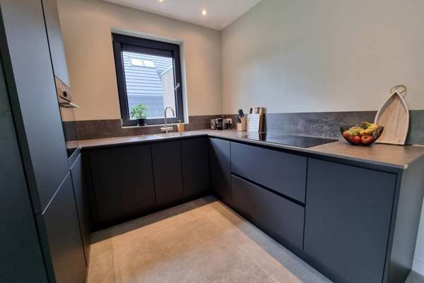 The open kitchen is part of the living room and includes a multifunction oven, Quooker, dishwasher and Nespresso coffee machine.