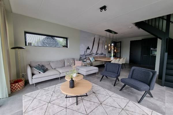 Through the French doors in the living room you can reach the enclosed garden with a lovely terrace by the water. Here you can enjoy endless peace and space.