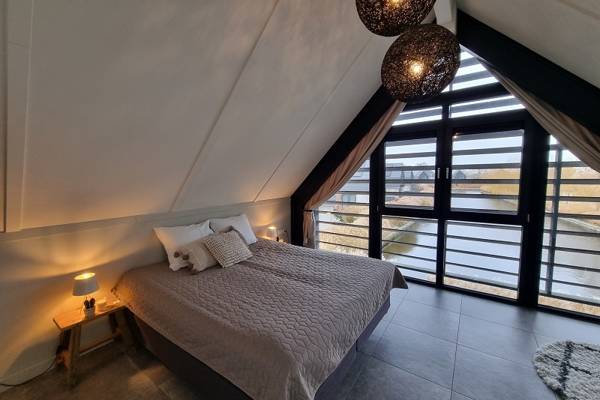 De watervilla beschikt over een ruime woonkamer met comfortabele zithoek, open haard, Smart tv en een ruime eettafel.